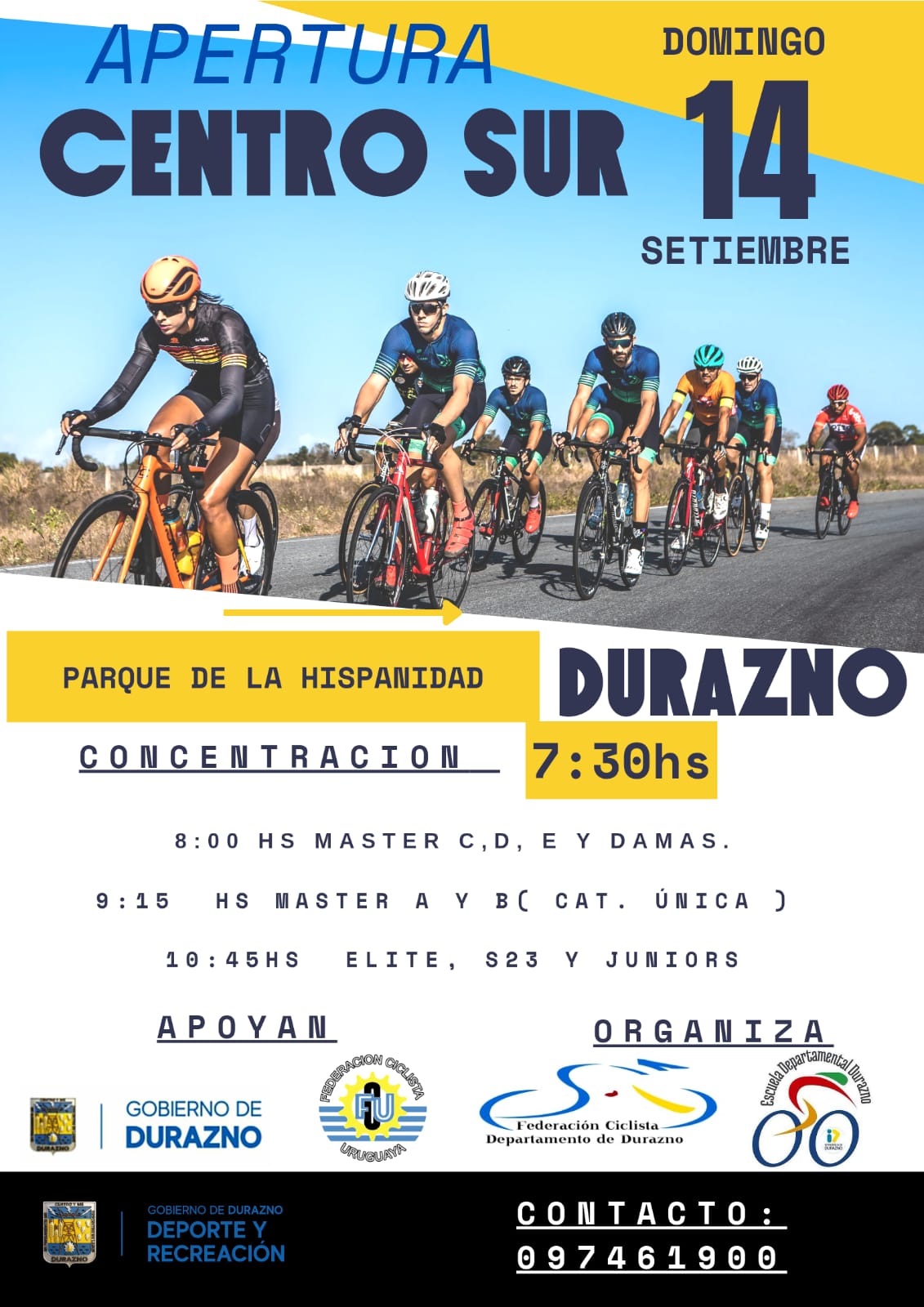 Organizan: Federación Ciclista Departamental de Durazno y Escuela Departamental de Ciclismo. Apoya: Gobierno de Durazno.