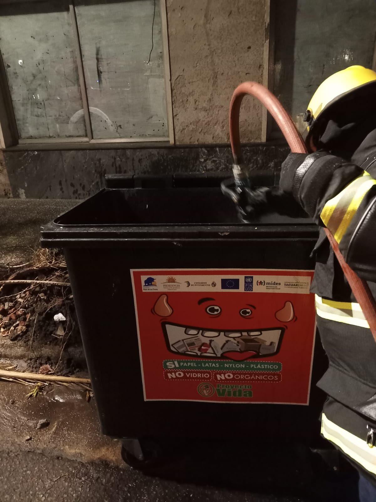 Siendo la hora 00:36 del domingo 28 de septiembre, fue solicitada la presencia del personal del Destacamento de Bomberos de Paso de los Toros por parte de un masculino que se acercó hasta la estación, manifestando que se estaba incendiando un contenedor de residuos en plaza Artigas, sito en calle José Pedro Varela entre Bulevar Artigas y Manuel Oribe.
