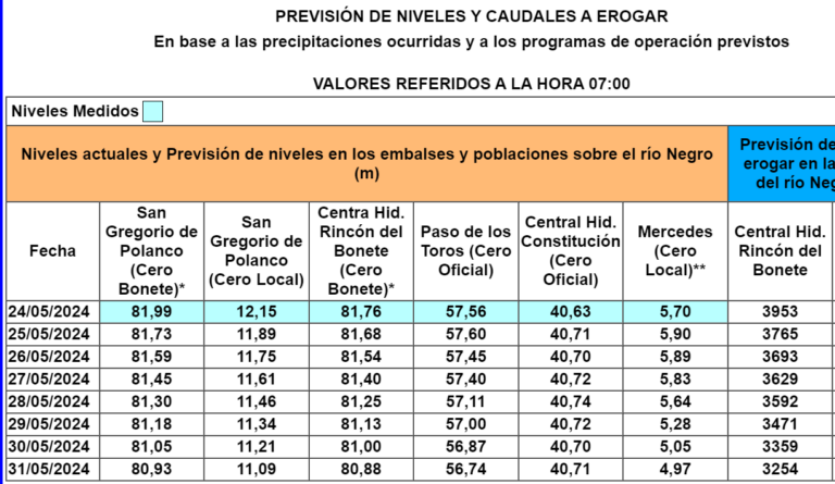 Oficina Cecoel de Paso de los Toros informa que la mañana de hoy se realizó recorrida diaria por borde costero de la ciudad y se evidenció una leve subida del nivel del río Negro, presumiblemente como consecuencia de las lluvias caídas la pasada jornada en la cuenca aguas abajo de la represa del Rincón del … Sigue leyendo Río Negro aumentó 26 centímetros por las lluvias caídas ayer